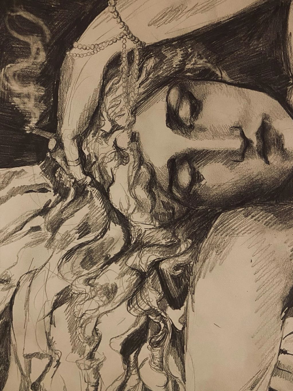 7” x 11” pencil sketch inspired by the representation of prostitutes in old European art.
