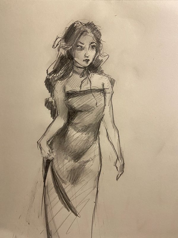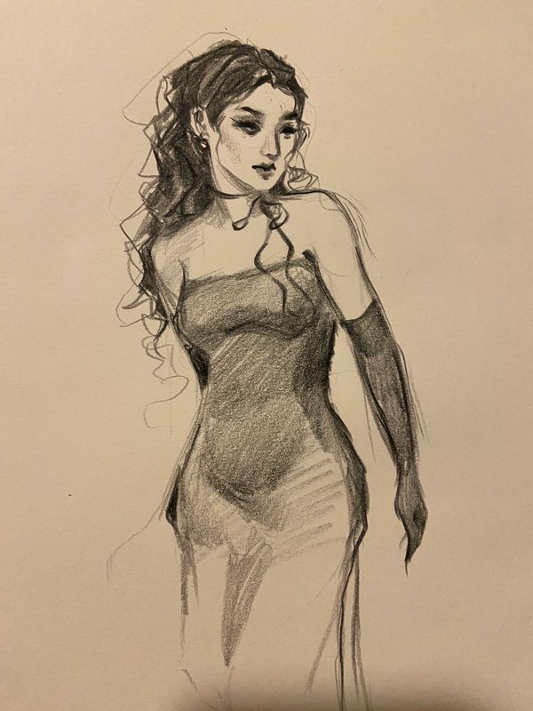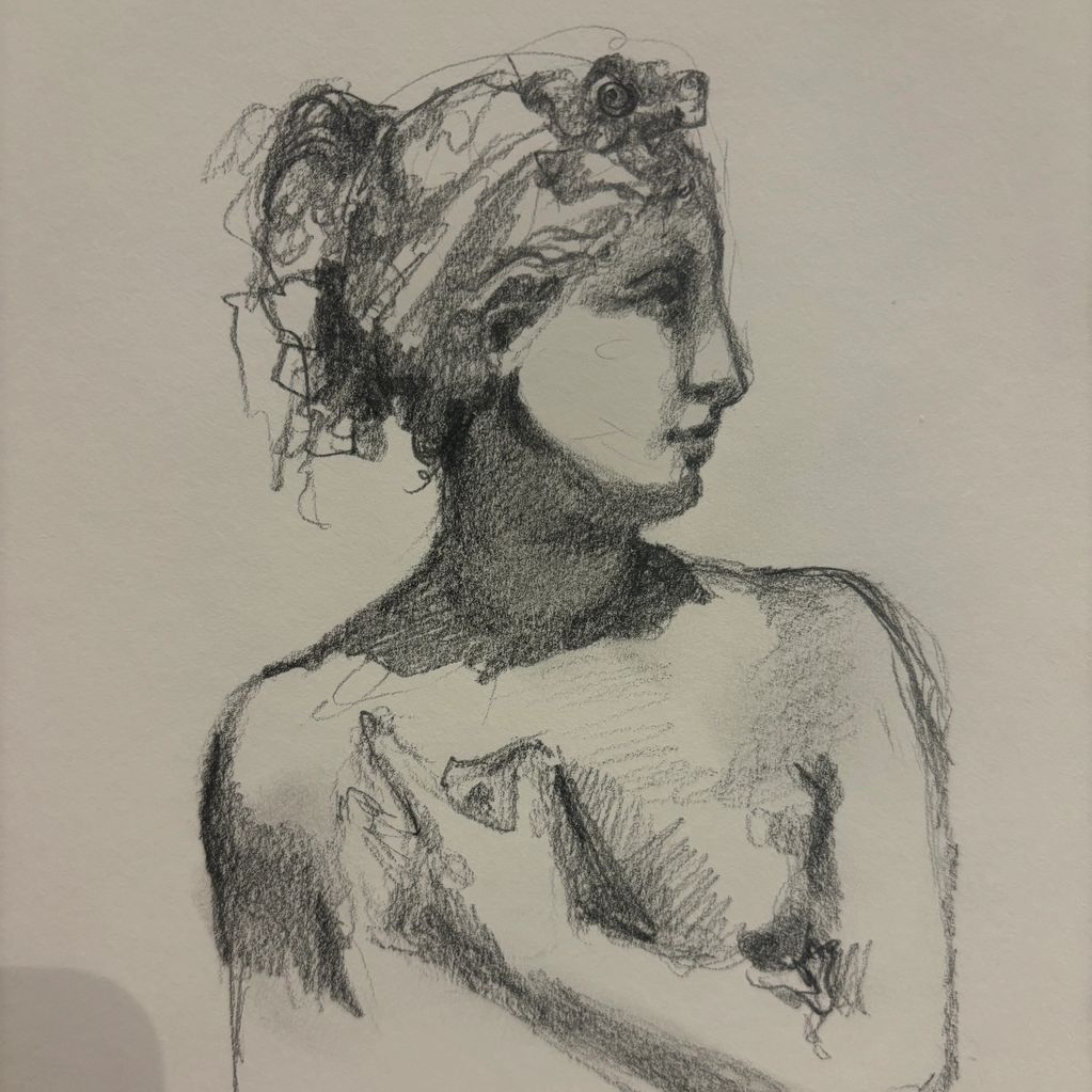 Small pencil sketch made in 2024 based on a statue displayed at the MET.