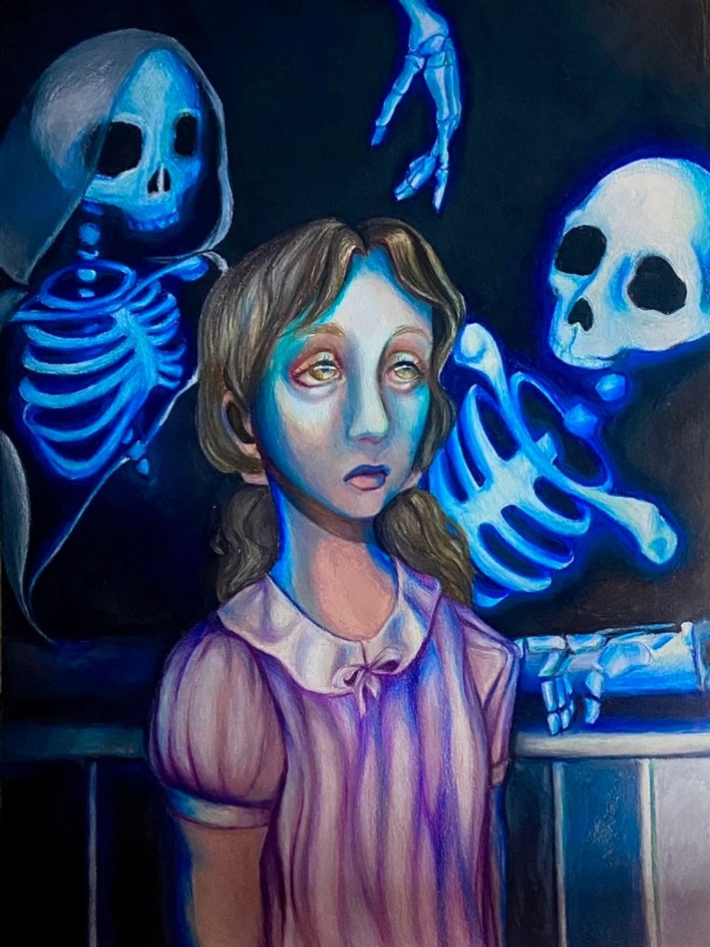 16” x 12” colored pencil piece. Artwork is inspired by reoccurring dreams that haunted me as a kid.