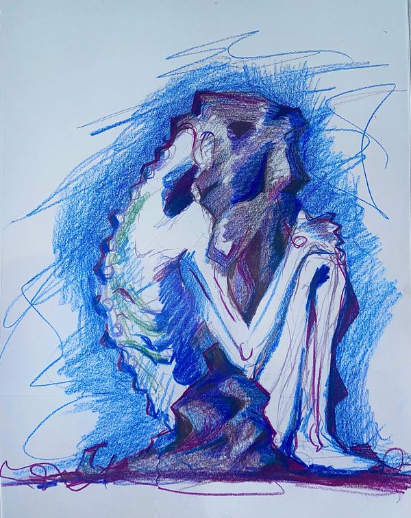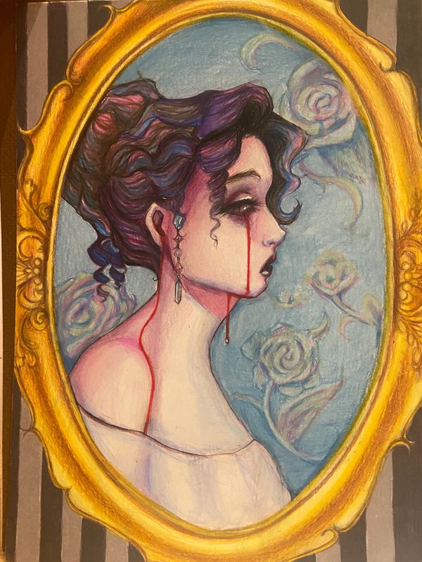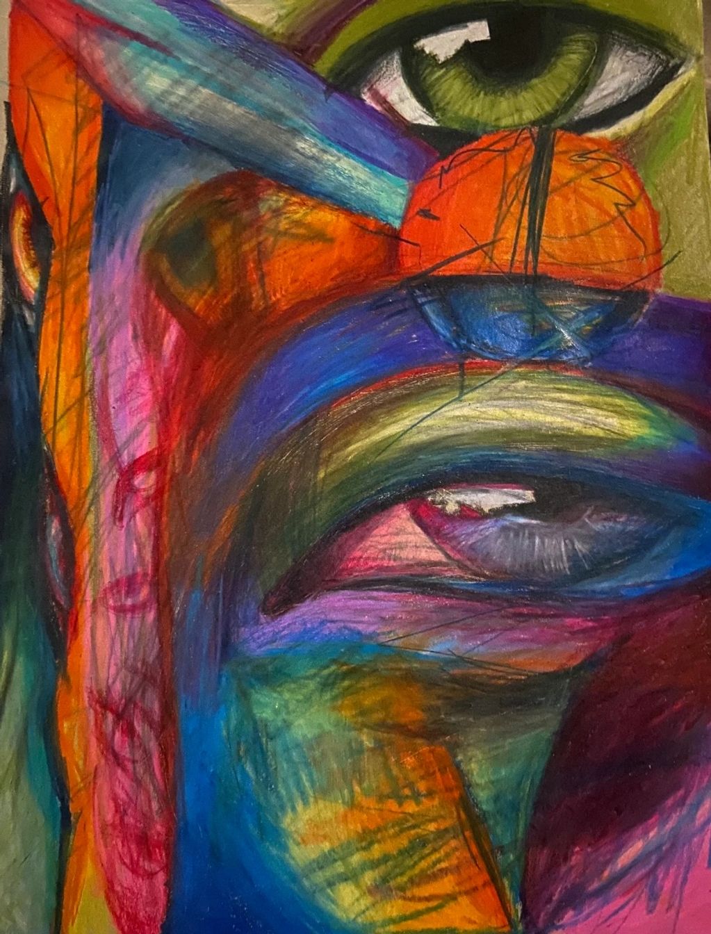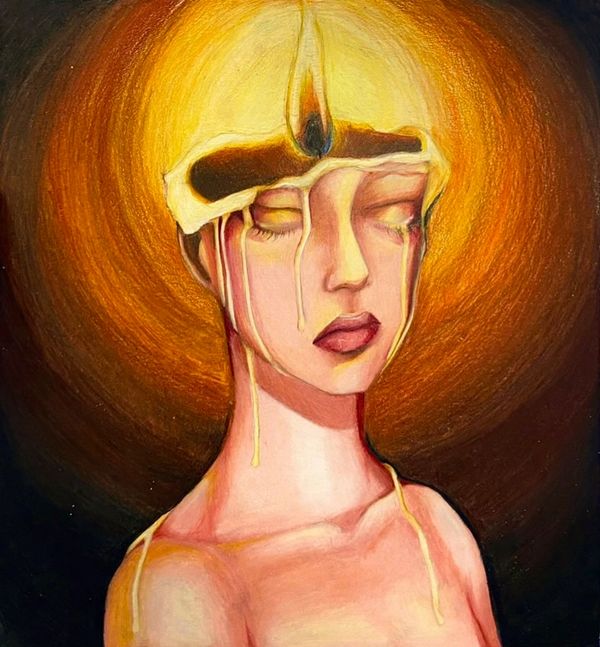9” x 12” colored pencil piece made in 2021. This artwork represents an experimental period of my learning curve as an artist. For my first time, I created without a clear form or subject.